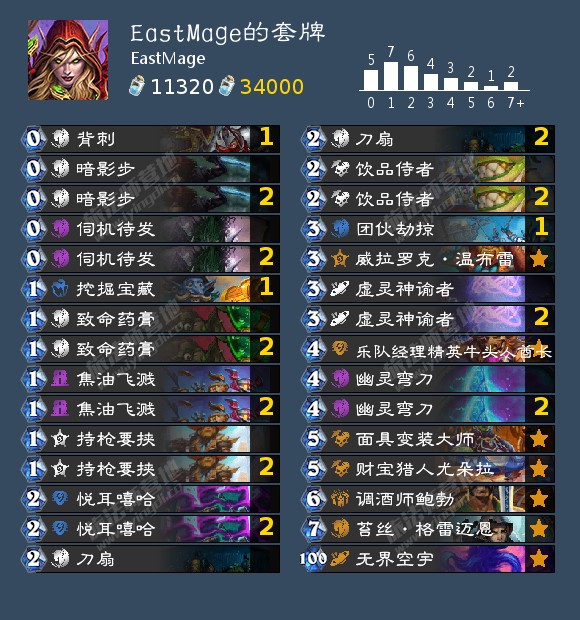暗影步:比较随意,前期手牌资源跟不上可以给虚灵过牌,或者给罗神撞两次,又或者找两次面具,场面压力不大甚至可以暗影步小狐狸两次完成任务。