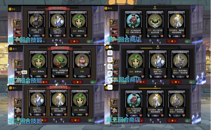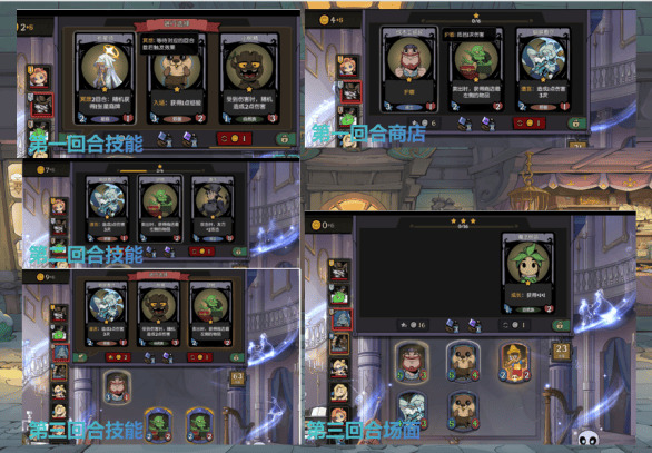 以10张1星卡计,在第一回合我们开技能,此时假如出现123三张随从,此时结合商店随从看,最差如果商店随从是456,此时从商店中拿一张收益较高的随从4;