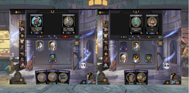可以看到的是,图一在第3回合就拿到了两张抬棺,以及两张1本金卡;图二在4回合拿到了机械鼹鼠。可以说,古堡在我们上期聊到的停本拿牌和空城上本之间选择了两者都要!!!