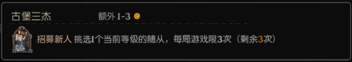 招募新人:挑选1个当前等级的随从,每局游戏限3次