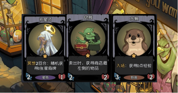 1本卡主要还是需要看技能以及商店给到我们的随从,如果能给到祈星师、水獭则是最优选,对我们的经济有着极大帮助!窃贼则是有一手的不稳定性,无脑贪的话可能会影响我们的选牌。
