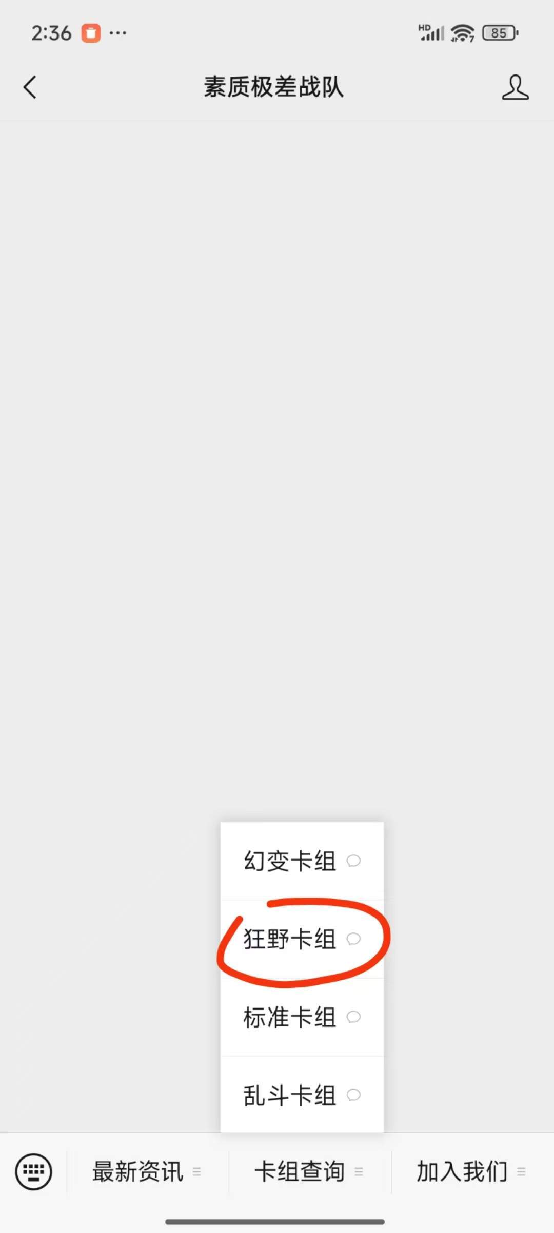 目前可通过VX公众号“素质极差战队”菜单获取实时卡组合集了