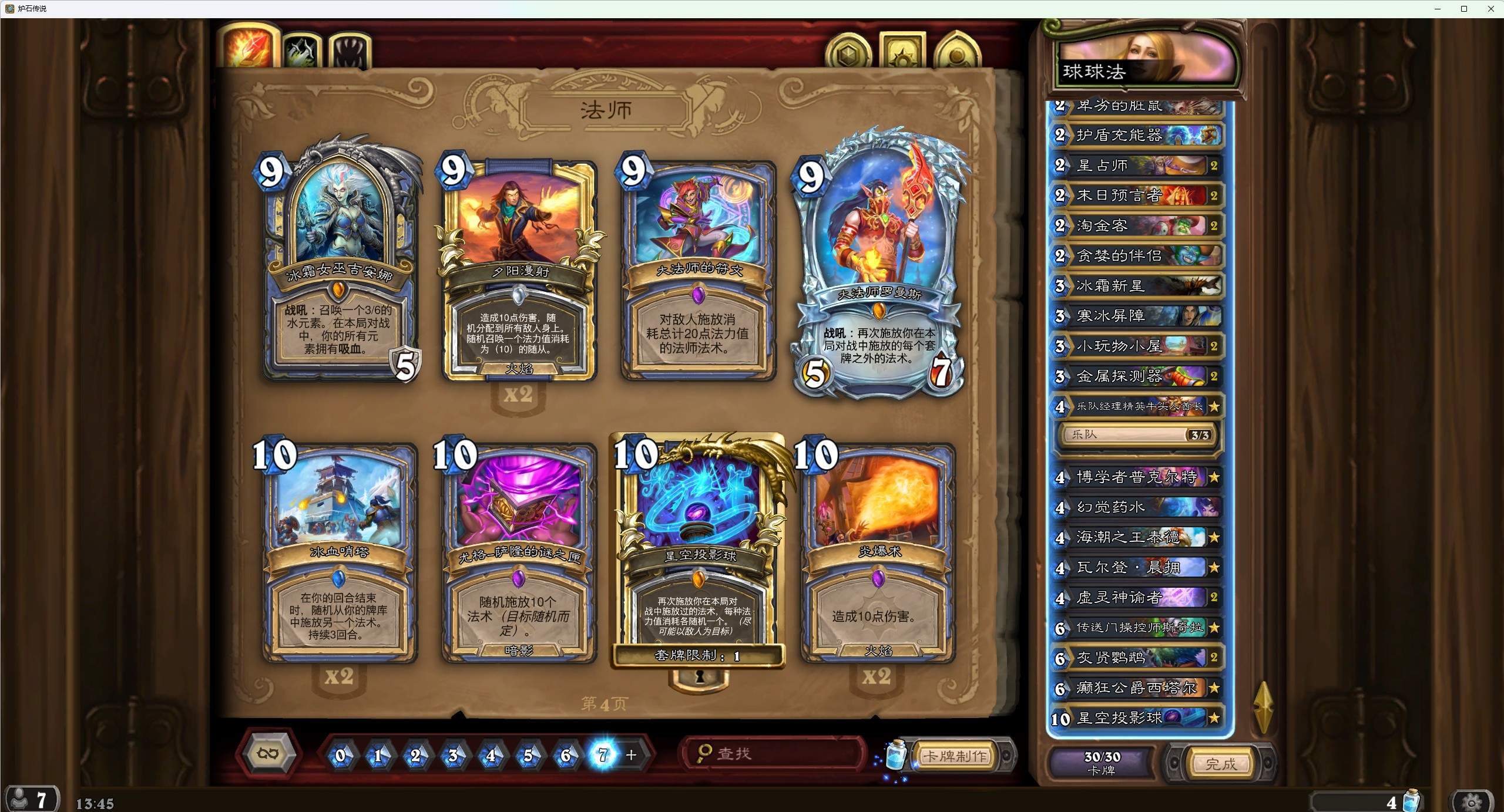 我们这个卡组是第一种。也分别试过后面三种,第二种感觉依托答辩,我自始至终都觉得纯大法术法在狂野太弱了(不是指****术法),体验过之后也加深了我的这个看法;第三种的话,强度还可以,只要不是30的,那不管是用奥术光辉无限的大法术体系还是幻觉体系都可以玩,唯独30的宇宙球又薄又慢,就是要注意姐夫给的法术牌如成长会内鬼,其他主包那也有卡组;第四种,不好评价,一开始我也是带很多龟和复制,然后不带野火带面具,后来觉得这种太慢了,因为我本身不喜欢一直纯龟看对面玩,只能说我个人不喜欢这种思路的球法。