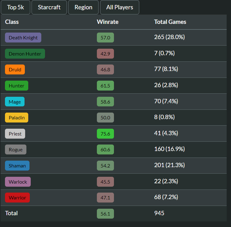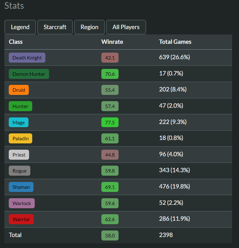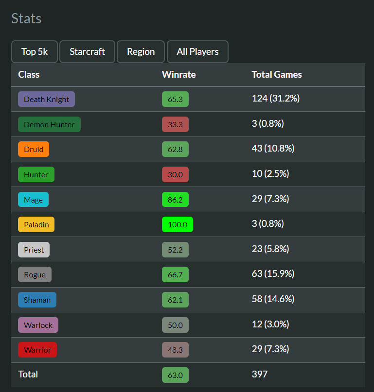 驴子网 深暗領域 01/23 前一千分段 标准各职业数据(微信小程序HS卡牌大师):