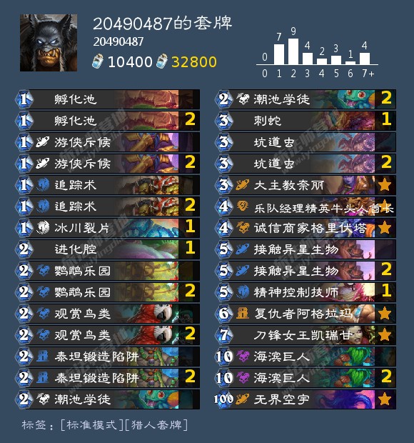 根据其哥的地标发现虫猎改版,进化腔和刺蛇各带一张,进可攻退可守,进化腔被减费后只有一费,在面对战士与巨像法的时候都能突然暴起斩杀。