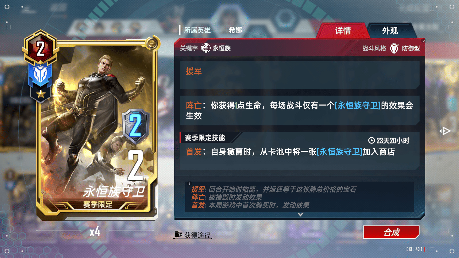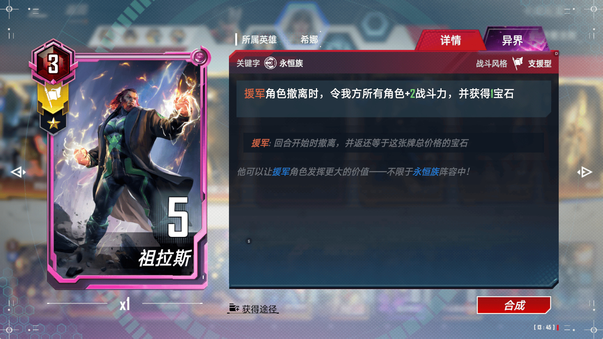 本卡组由 钢铁侠 索尔 希娜 组成 相比较艾丽卡 个人认为 带希娜的辅助比带艾丽卡要稳 (毕竟希娜有个永恒援助技能神技)