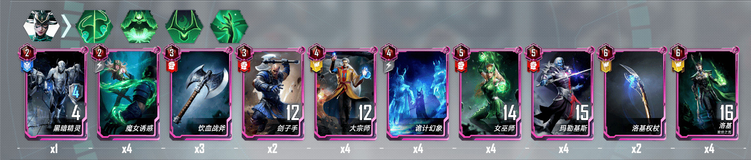 2.洛基+女巫师/穿甲弹/钢铁侠能轻松去除敌方单位,诡计终幕也能配合去除。