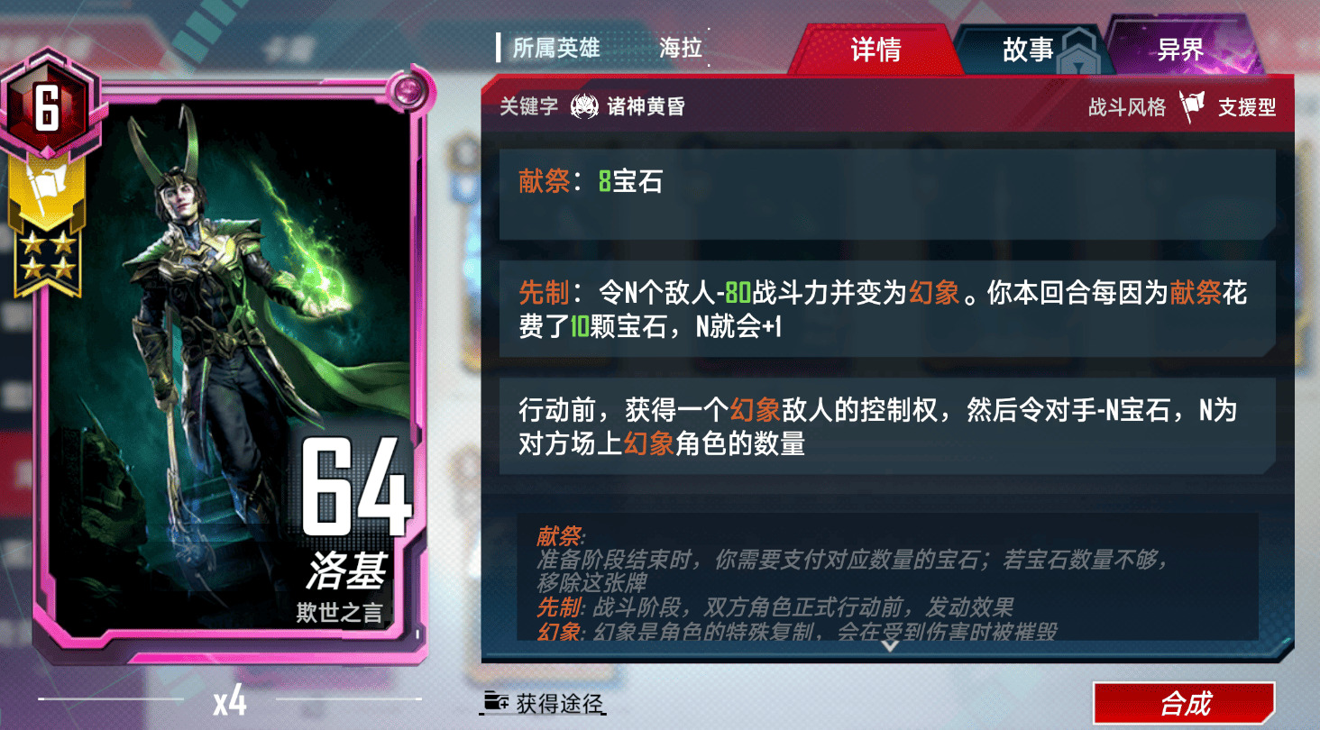 首先要给这哥们道歉,前瞻的时候我还是声音太大了(笑)。这老哥前期能一打2甚至更多,中期借助诡计幻象提供海量的宝石,后期补足洛基献祭所需的宝石,可以说前四回合拿到二星的他+斧子你就是超人,团战打得好甚至能打得过2回合到手的红斗篷。