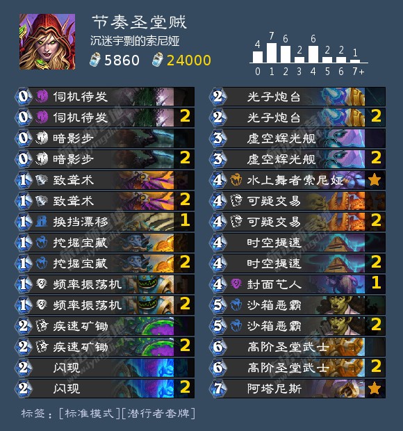 这套星灵贼延续了以前圣堂武士的后期otk思路,但由于辉光舰的加强,使得前期的场面和节奏更加顺滑,解场站场能力更强。