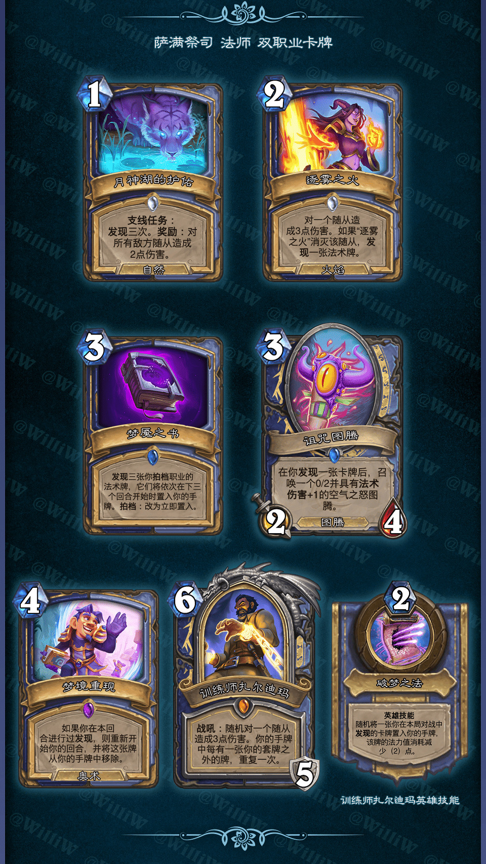 - 如果施放的法术消灭了多个随从,则会随机召唤其中一个被消灭随从的一个1/1复制。