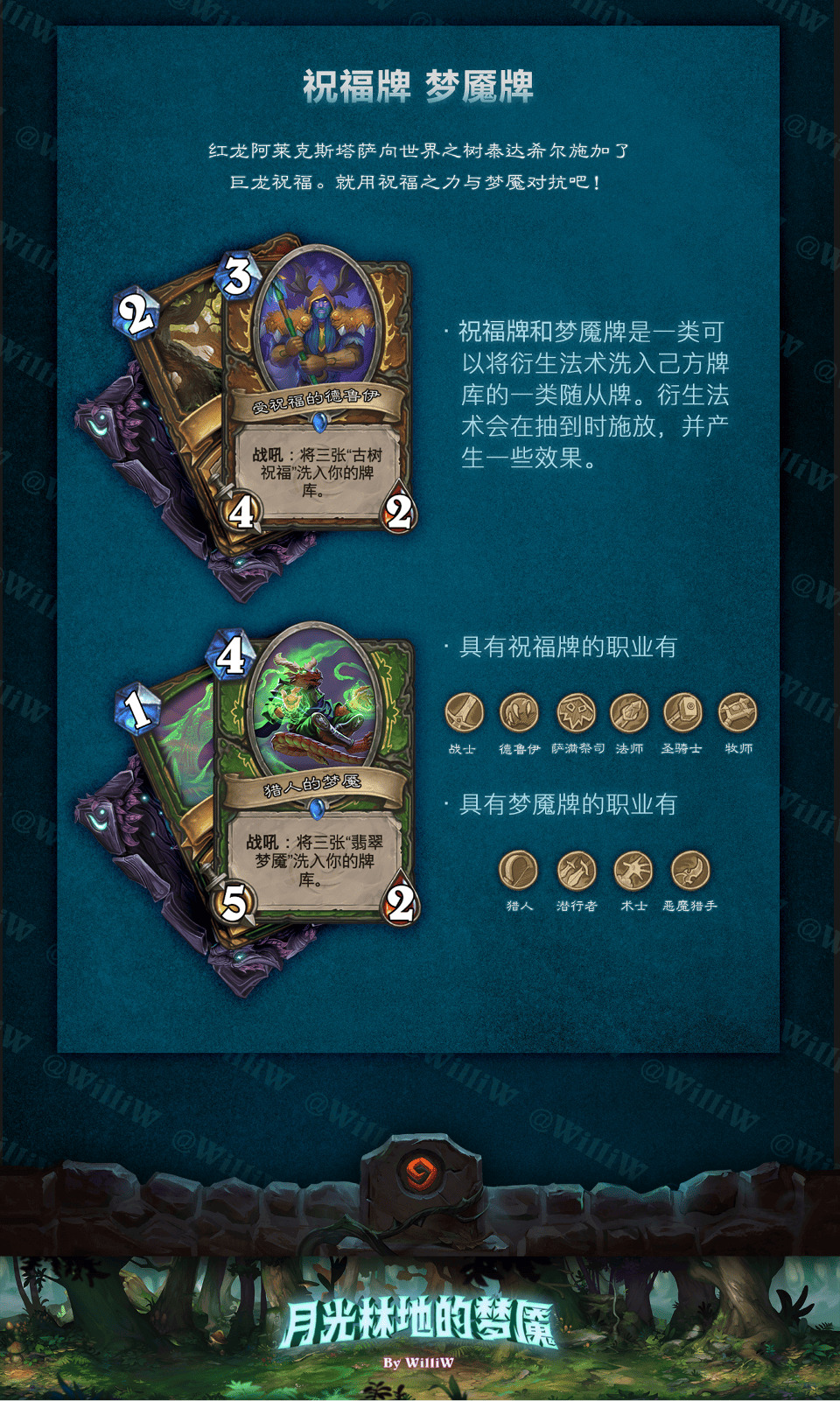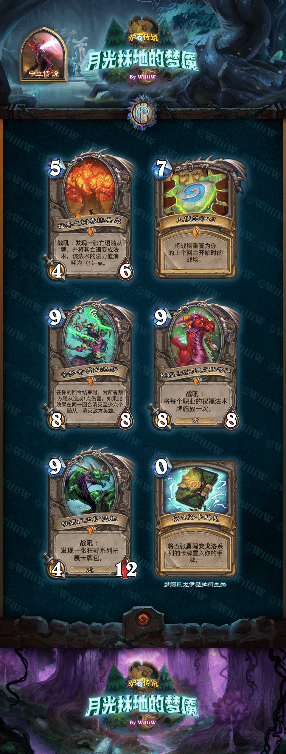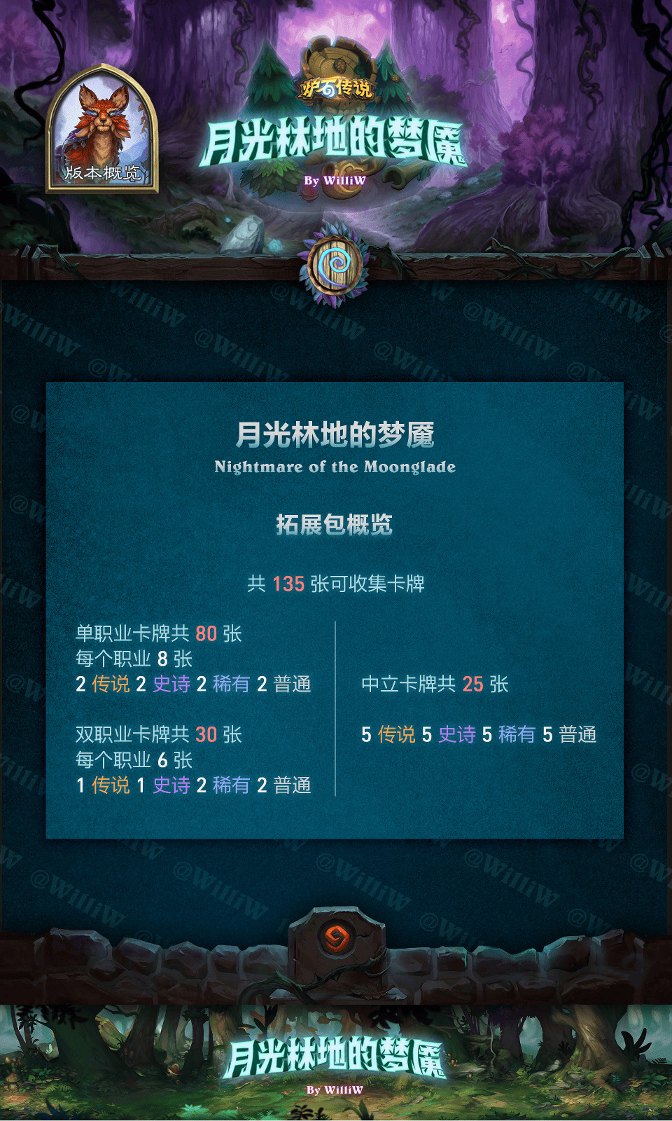 一眨眼就到了2025 年,新年的第一个拓展包将会再度聚焦翡翠梦魇的故事。而在四年前,我曾根据同样的故事背景DIY了一套原创拓展包 :月光林地的梦魇,当时在旅法师营地发布。可惜由于数据遗失,原先的内容已无法找回。