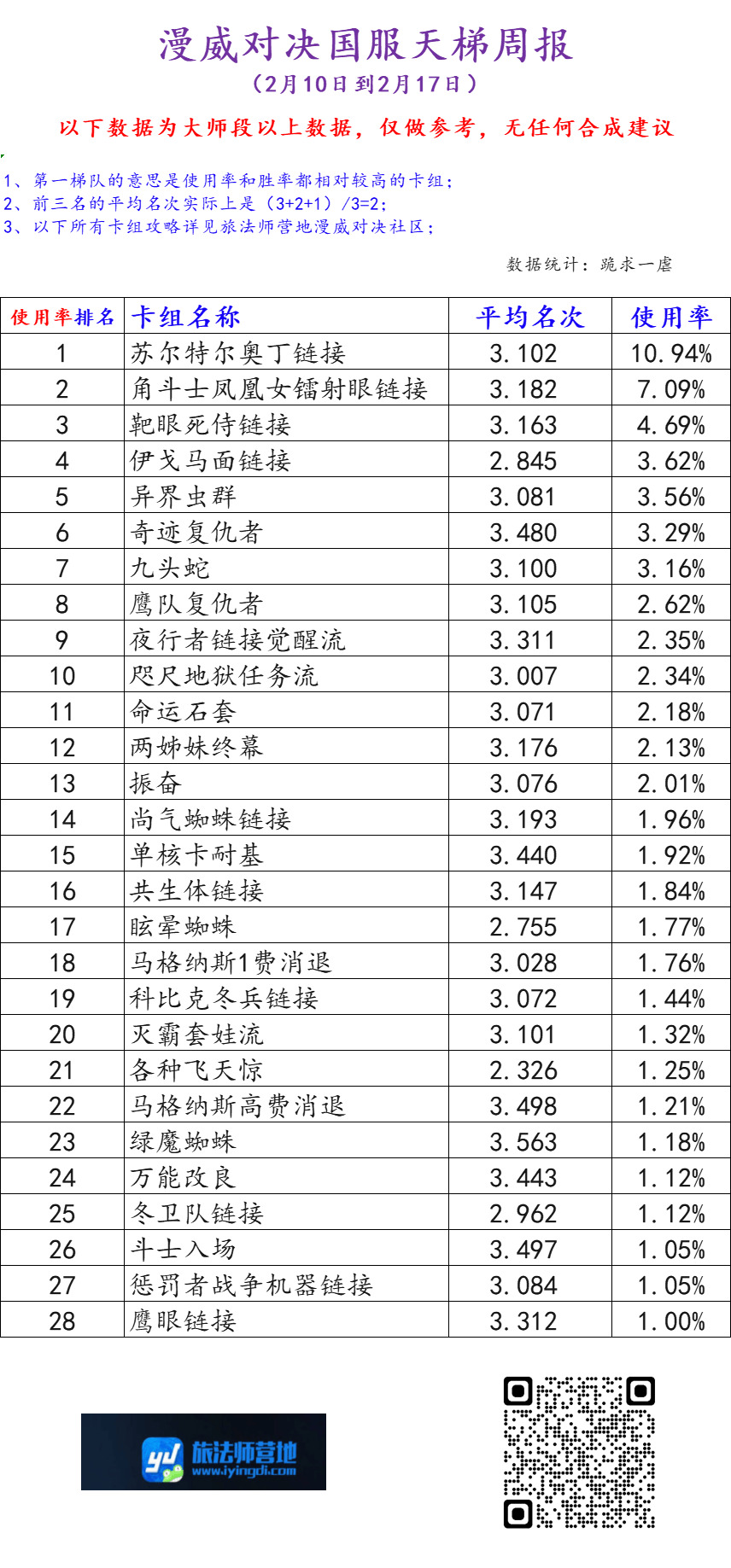 本周报数据仅做参考,本文不做任何卡组推荐、合成: