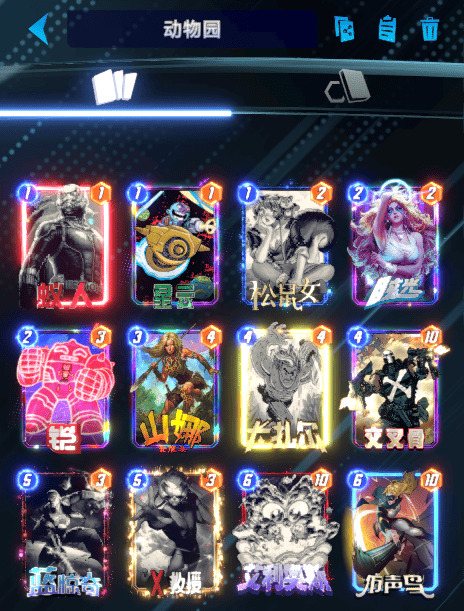 对战阿加莎动物园时就发现,动物园简单铺场,点数就不小,现在有了仿声鸟,松鼠女和山娜就可以把仿声鸟减到1费。加上快速铺场,4回合交叉骨(卡扎尔),5回合教授(蓝惊奇),最后还有黑云可以斩杀。铠这个位置换凯依拉也可以,但是我遇到的一般都是带3M,放弃防齐尔蒙格,反针对灭霸,效果也很不错。