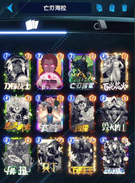 目前最强的轮椅卡组,基本不需要太多决策,经常随便下牌就能自己产生梦幻联动,比如百光花火和恶灵骑士拉奥丁等。第3回合打亡刃,第5回合打海拉,第6回合这路再打奥丁,这个套路打出来不止能赢,效果也非常的赏心悦目。缺点就是海拉卡组玩多了,人变懒了,玩灭霸卡组需要抉择的时候反应明显会比以前迟钝。