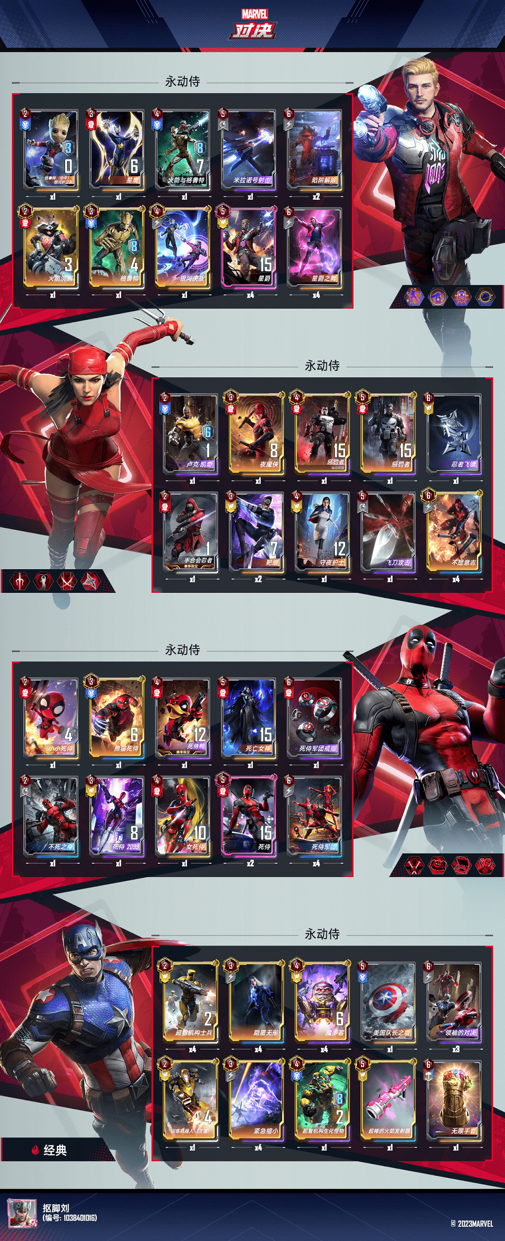 都是老玩家了,没啥好说的,运营节奏按自己舒服的来,这是常规阵容,靶眼放第一个,用异界星爵加战力防止**,也就能打打傻大个,主流卡组基本都打不过,仅做娱乐。