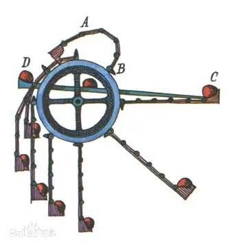 著名科学家达·芬奇早在15世纪就提出过永动机不可能的思想,他曾设计过一种转轮,如图所示,在转轮边沿安装一系列的容器,容器中充了一些水银,他想水银在容器中移动有可能使转轮永远地转动,但是经过仔细研究之后,得出了否定的结论。他从许多类似的设计方案中认识到永动机的尝试是注定要失败的。他写道:“永恒运动的幻想家们!你们的探索何等徒劳无功!还是去做淘金者吧!” 然而,15世纪以后的好几百年里面,制造永动机的活动却从未停止过 。