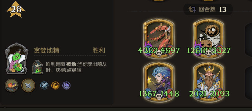 整体来看,贪婪地精就是一个前期较弱,但升本速度极快的经济型随从。从数据上看,贪婪地精在镜极阁楼的吃鸡率和四强率都不低,因此贪婪地精也是一个非常适合上分的稳定型随从。贪婪地精的技能简单,其玩法也并不复杂,但想要发挥其效果最大收益也并不容易,那么下面我将一一介绍。