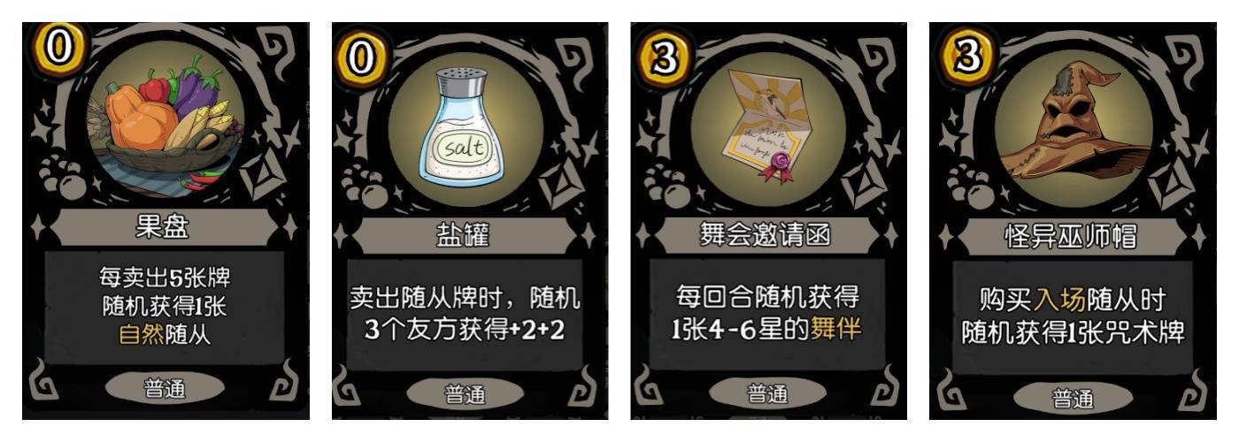 最适合贪婪地精的普通珍宝就是果盘。果盘的效果会让贪婪地精在买卖牌的过程中还能额外收获自然随从,如果给的是例如林地看守、曼德拉草等经济随从那么会更有利于贪婪地精的速本。这个珍宝在后期倒转后的强度也是相当的高。在有战士种族的情况下,盐罐也是非常不错的选择。在中期盐罐可以帮助贪婪地精补充阵容身材,在后期还可以搭配玫瑰剑士加速全队身材的发育。其他可以提供随从牌的珍宝都会非常有用,例如舞会邀请函和所有百科全书类珍宝等。由于贪婪地精可以购买大多数的入场牌,因此怪异巫师帽也会有着不错的增益效果。