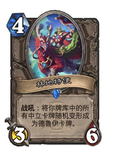 :将你牌库中的所有中立卡牌随机变形成为德鲁伊卡牌。