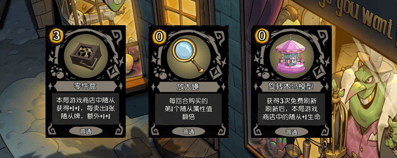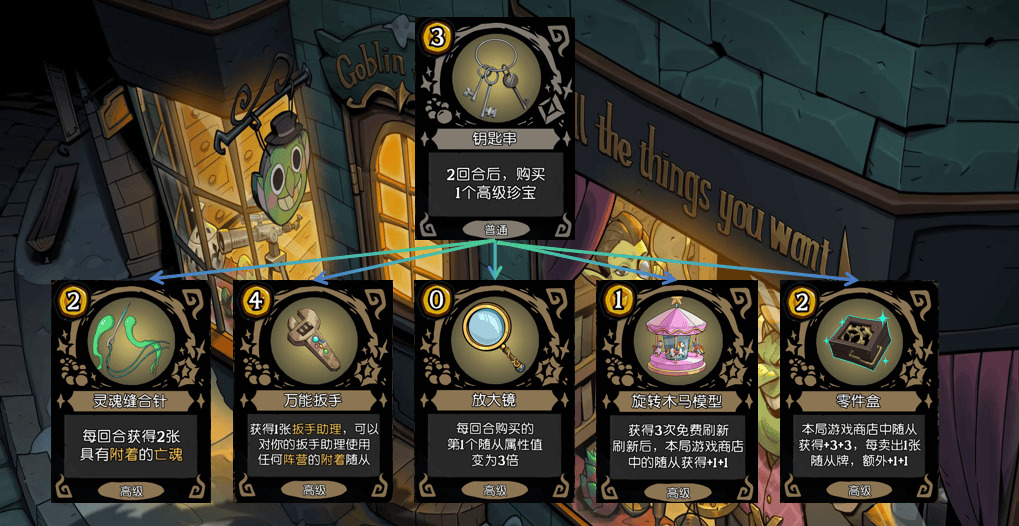如果不拿以上普通珍宝的情况下,只能通过咒术、机械等牌来增加商店随从身材,一般如果想烂分对局来说也还是够用的,假如想玩的爽的话还是对商店随从多buff一下。
