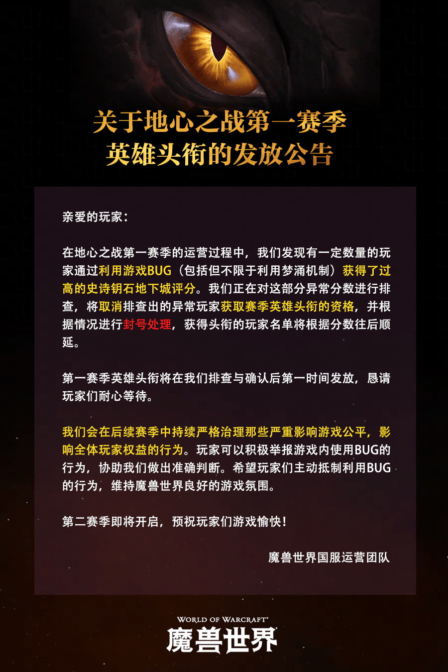 此内容转载自魔兽世界运营团队