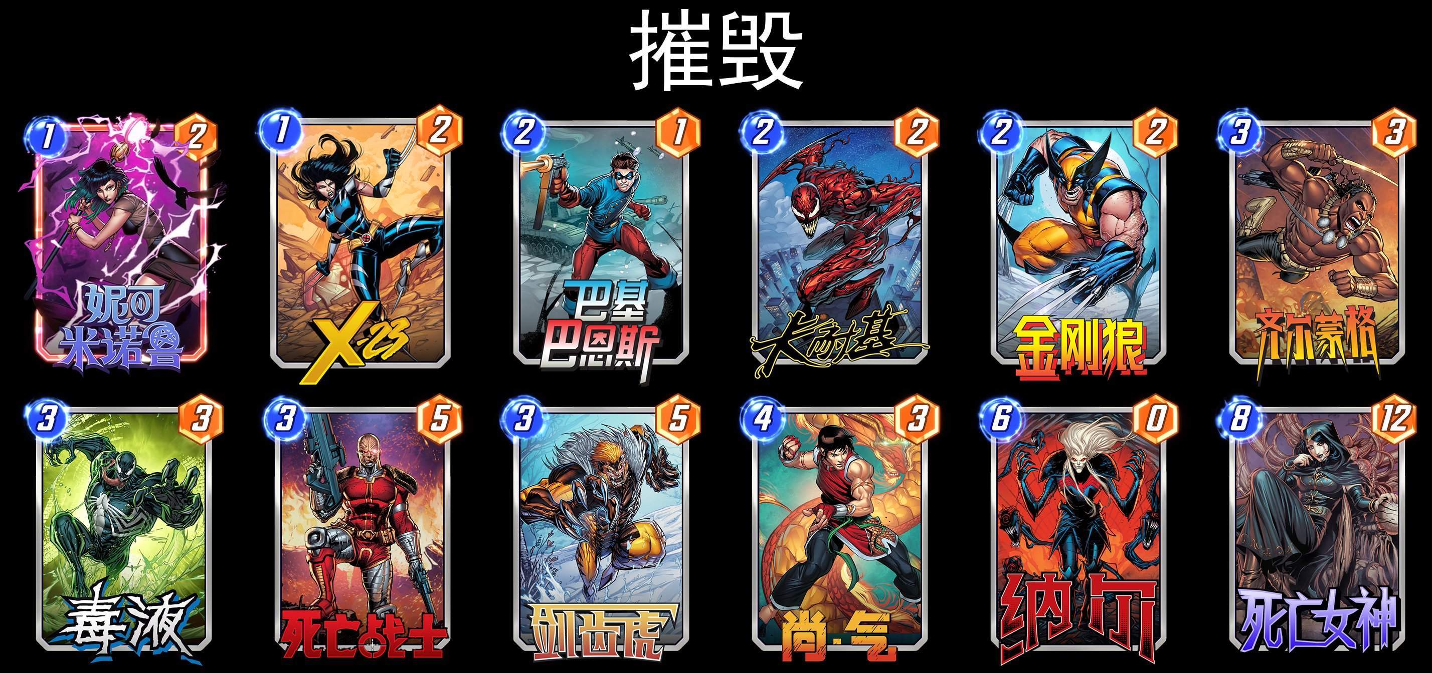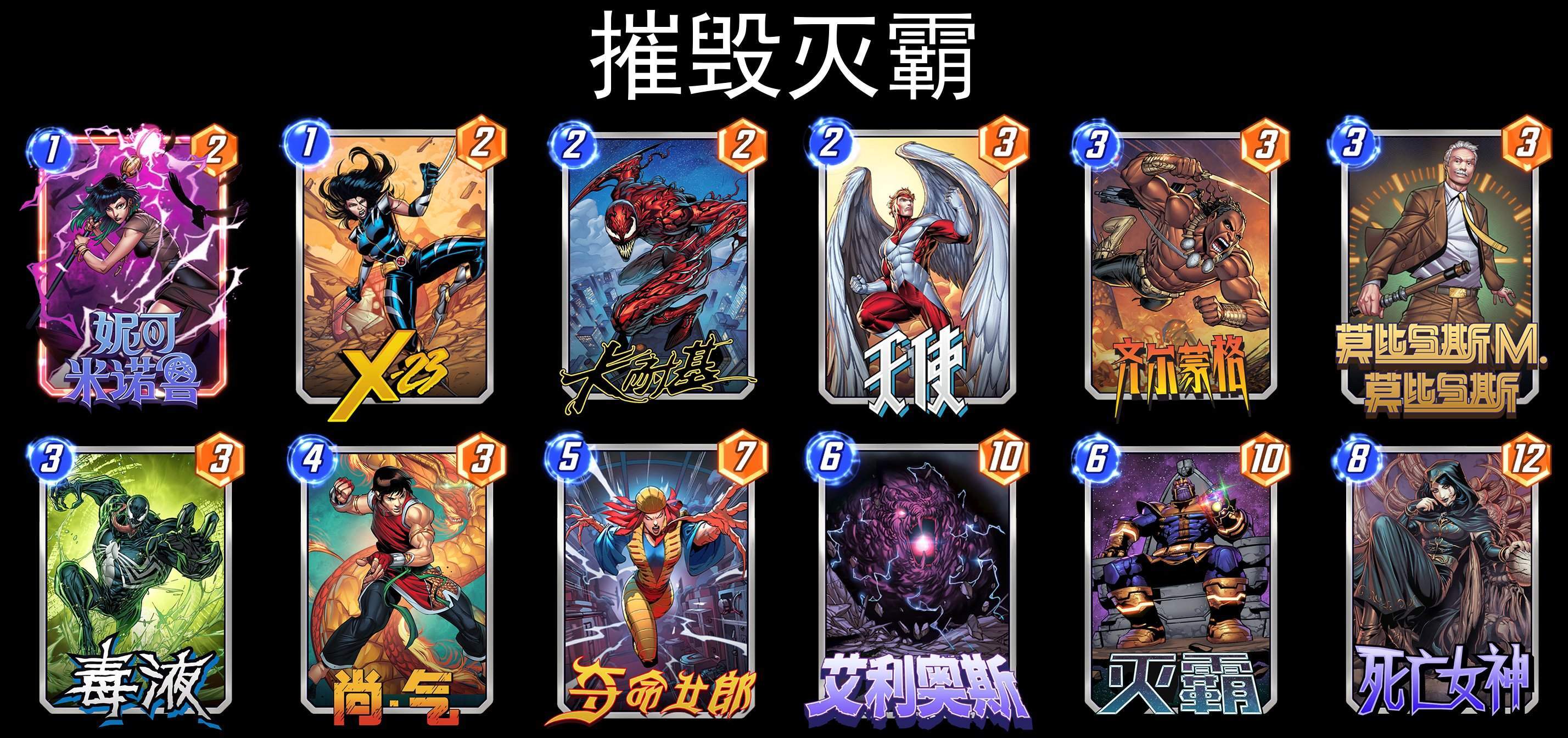 我特地试了下这套官方推荐构筑,没有传统死侍和反浩克装甲好用,如果有什么思路和操作上的问题,欢迎一起讨论研究。如果是新手摧毁推荐构筑,也不该是这个样子才对。