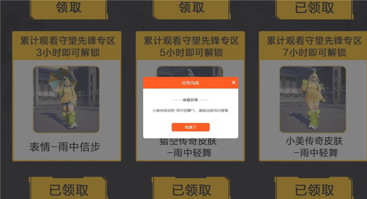 是鱼台和守望官方联合出的福利活动,操作很简单只需要完成绑定,去到守望先锋专区看直播就可以,五个小时可以领到猎空传奇皮肤,7个小时可以领到小美传奇皮肤,建议去看哈蒙德的直播比较有趣.