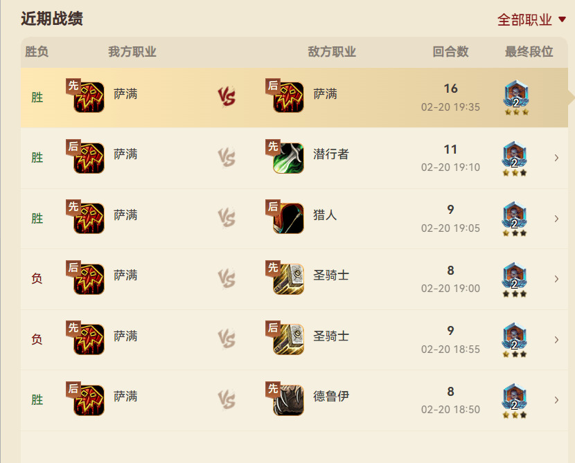然后我是用盒子查的最近20把战绩,因为之前的宇宙萨输烦了,然后换的卡组,所以看最近18局。