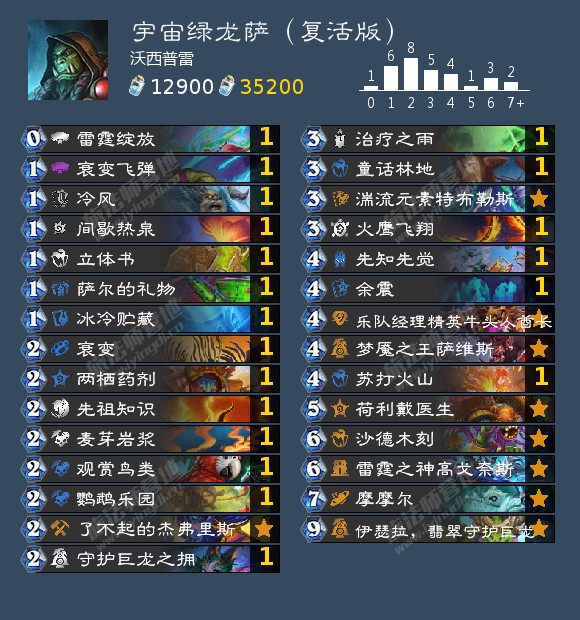 因为原组件容易被破坏,抗快攻能力较弱,所以我改了套宇宙出来。加入了宇宙体系、猎人游客。经测试因为有宇宙随从所以组件被破坏的概率降低;带了治疗和aoe法术,抗快攻能力有所加强。就是大多数情况下比非宇宙慢了,希望有大佬精炼。