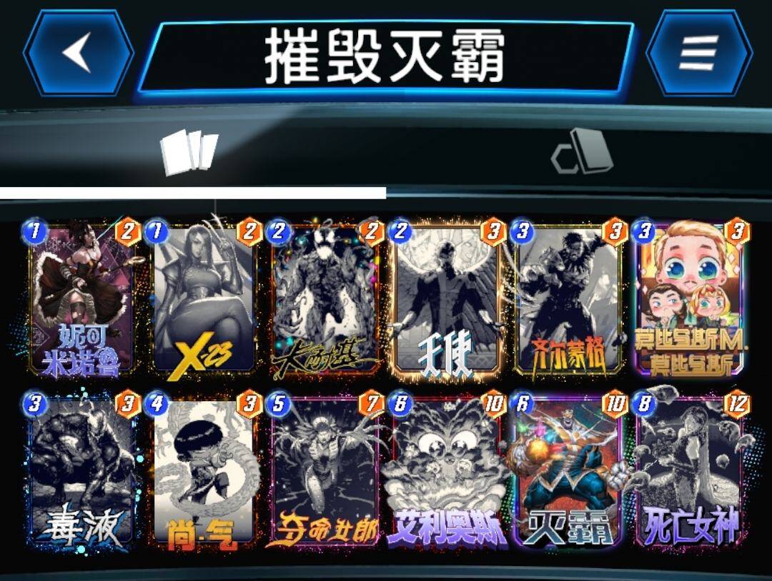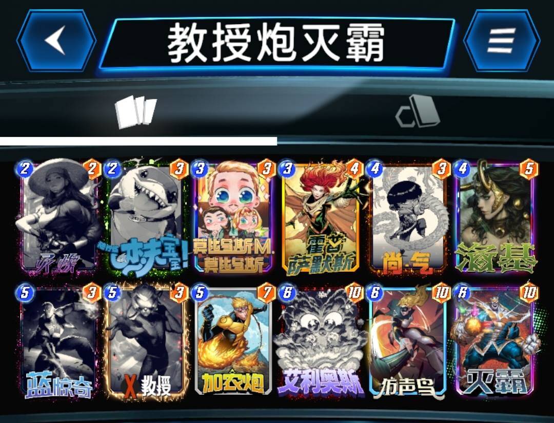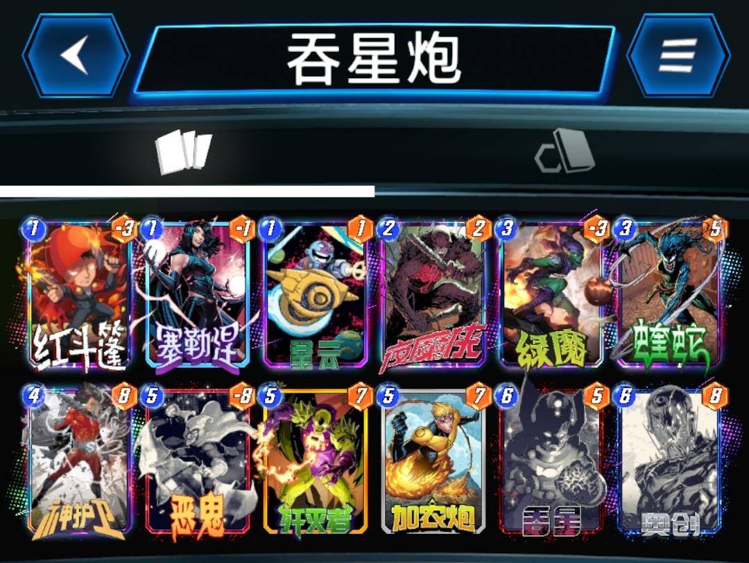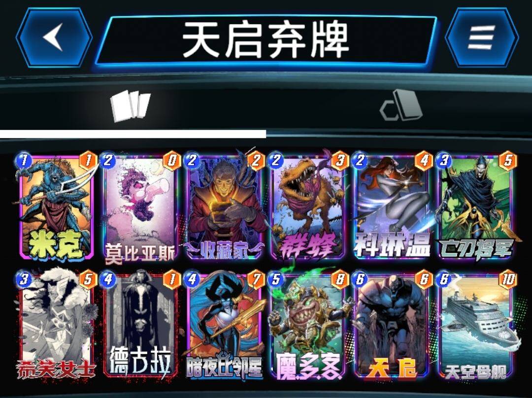 灭霸不行之后,霍普移动卡牌齐全的玩家开始玩这套卡组,虽然卡组名字上带移动两个字,但是实际操作上并不烧脑,也不需要移动卡牌来增强战力,这套卡组中的移动只是为了填满一路之后移走,空出位置,继续刷血石和安吉拉,最后一回合那些还没移动过的卡牌,就算劣势有也可以移动和对手猜边,又到了经典的你猜我动不动的环节。蜘蛛侠可以根据个人喜好替换成蛛丝,这样可以更容易打出迈尔斯。