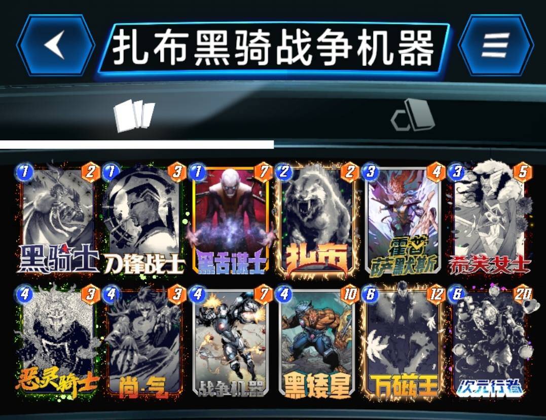 扎布黑骑中速,新卡战争机器也加入了其中,卡组构筑也从2种变成了3种,魔方数0.1+,表现不错。5回合打战争机器,6回合可以直接打次元行者,除了被丢弃以外,次元行者多了一种展开方式。黑骑遇到摧毁很难打,摧毁第3回合先手齐尔蒙格,后续还有尚气,打其他卡组的话看双方玩家的操作了。