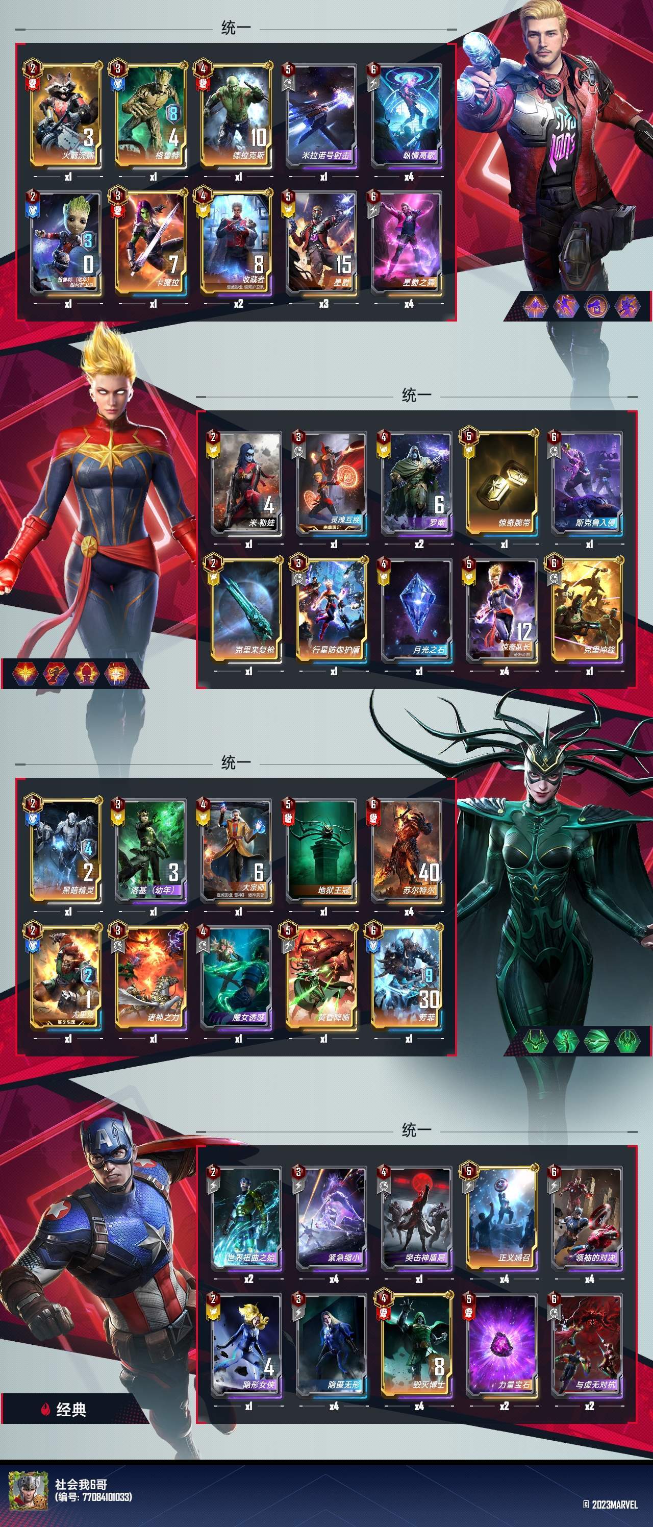 4.新惊队,4张,统一战线**核心,有罗南和星爵这种小身材触发护盾,就算被异界洛基减到0功,变幻象,星爵有隐匿也不影响触发。同时对面带姆巴库拆护盾也不亏。