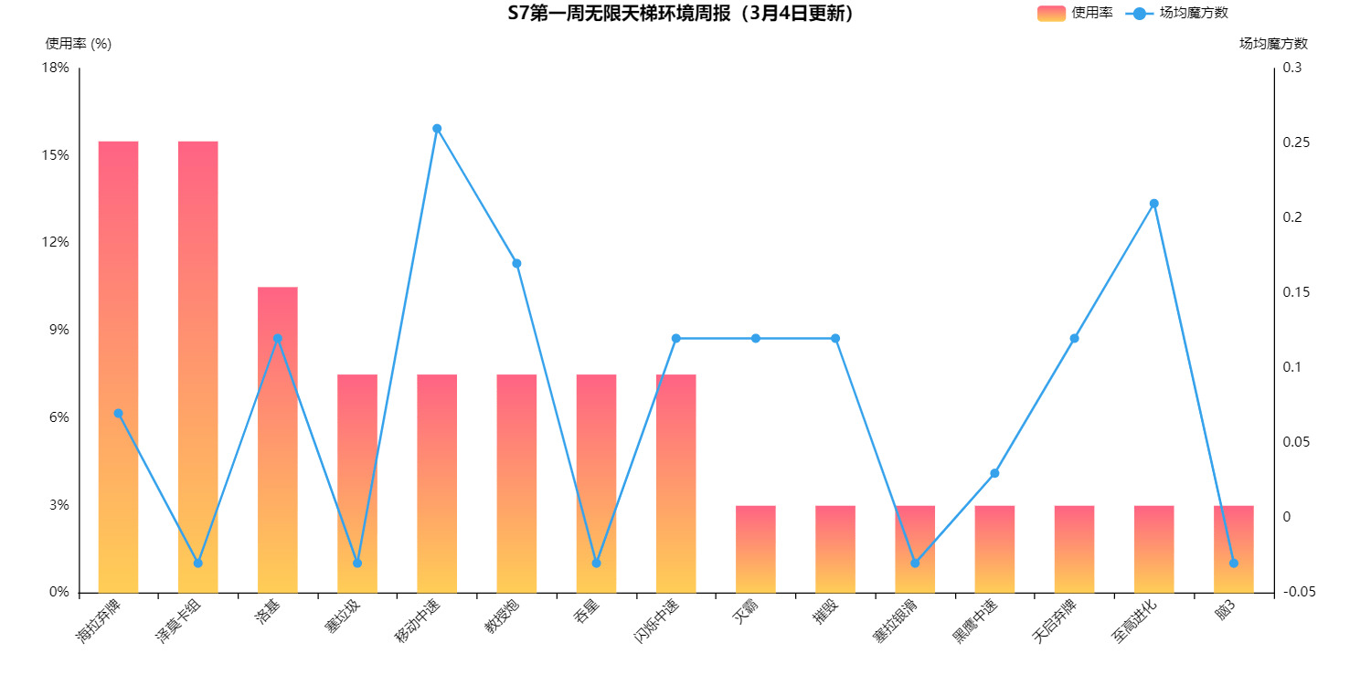 闪烁海拉使用简单,胡起来不讲道理,轮椅卡组使用率登顶了,魔方数表现一般,但是胜在使用简单,无需太多思考,方便完成日常任务。