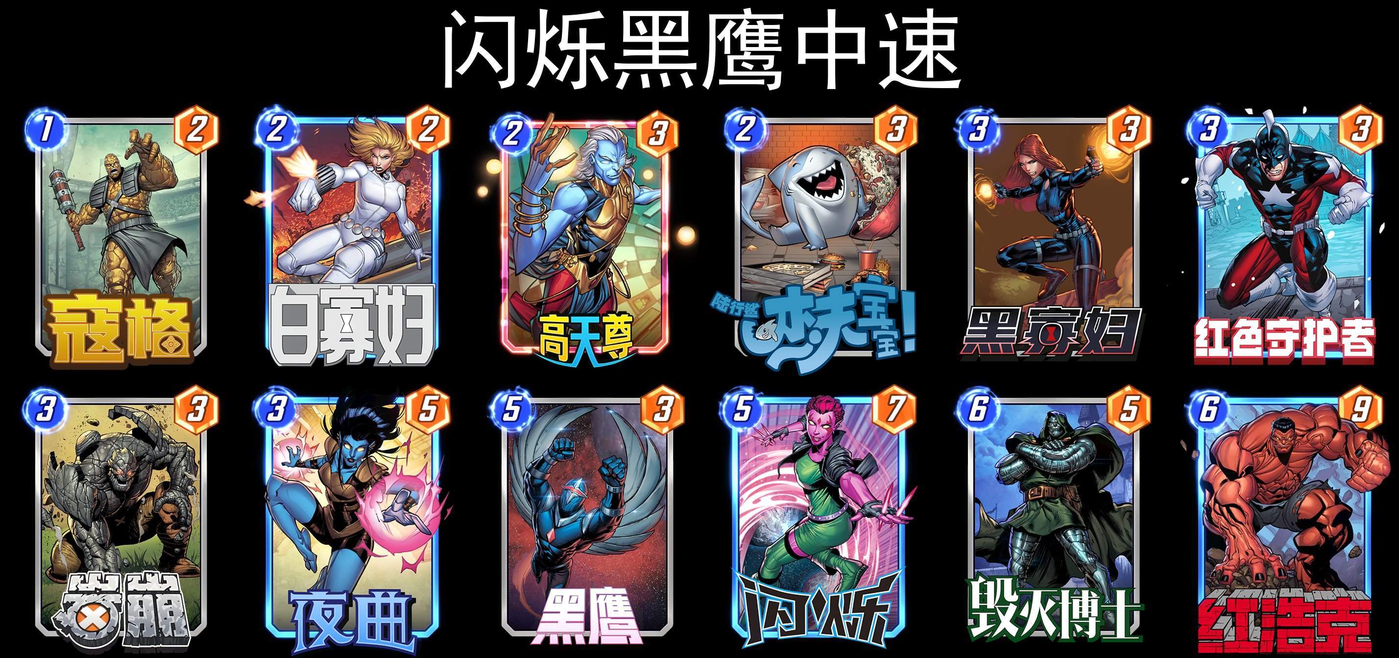 偶有遇到这套卡组,从构筑上来看,应该不弱,但是实战中还是很依赖黑鹰和红浩克同时上手,否则点数不太够。