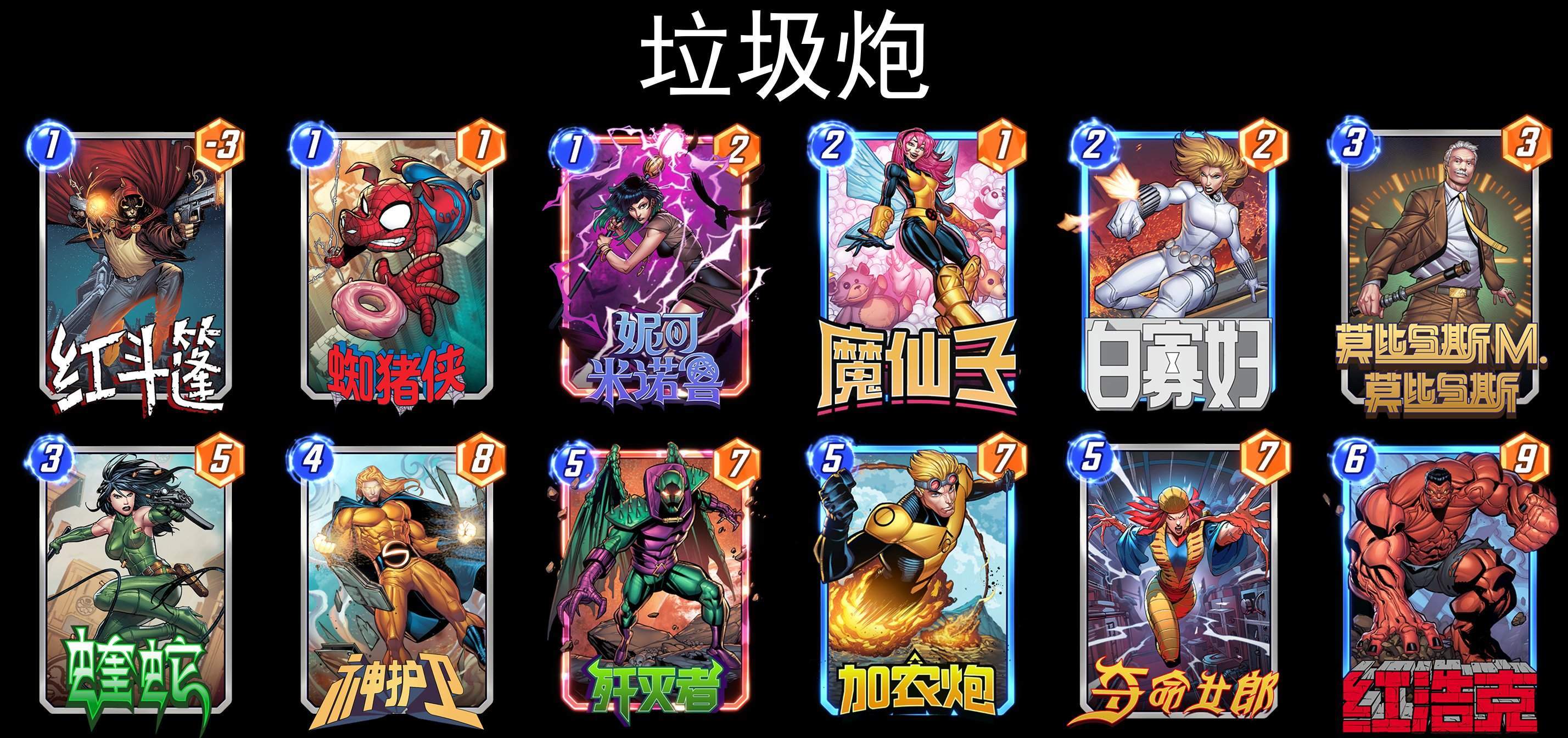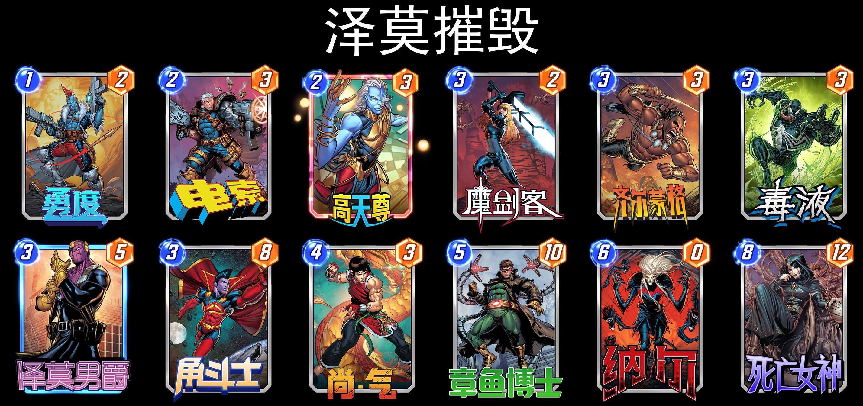 这里官方给的摧毁构筑很有意思,带了巴基巴恩斯和剑齿虎,这个构筑在受到对手针对或者自己卡手的时候,会有更好的表现,我打算尝试一下然后再评论区补充感想。面对摧毁卡组,就算地形卡手牌限制了两路,依然是有可能输掉的,对手经常只需要摧毁1~2个轮次,最后2回合还是能打出两路很大的点数,一刻都不能放松警惕。