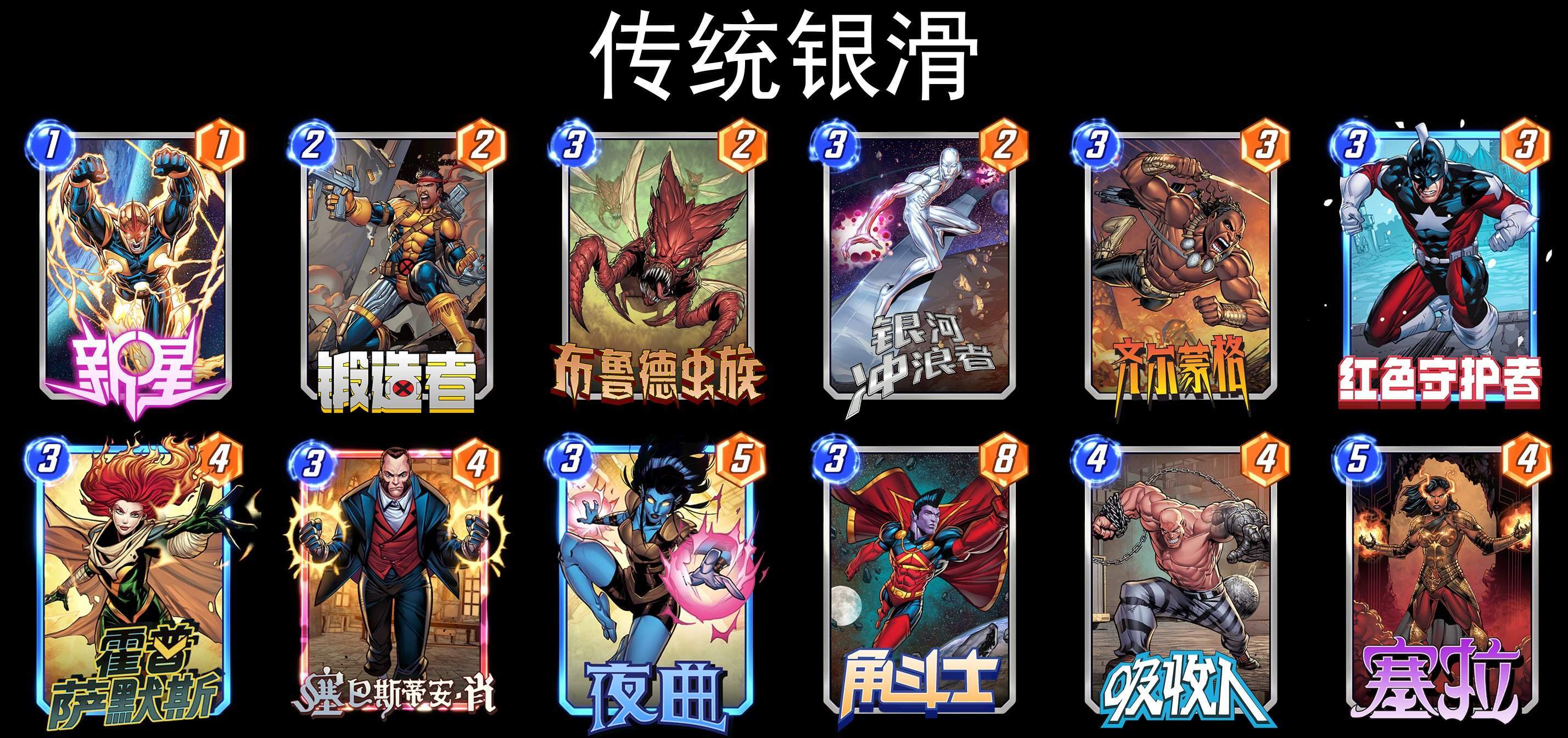 银滑卡组非常需要自己的12个格子不受对手的干扰,赛季开始策划送了每人一张白寡妇,银滑很难有比较好的发挥。银滑的构筑上也融入了新卡,有提升和变化但是没有其他卡组那么明显。