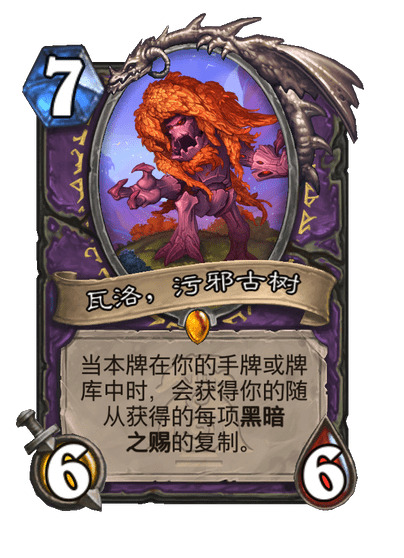 当本牌在你的手牌或牌库中时,会获得你的随从获得的每项黑暗之赐的复制。