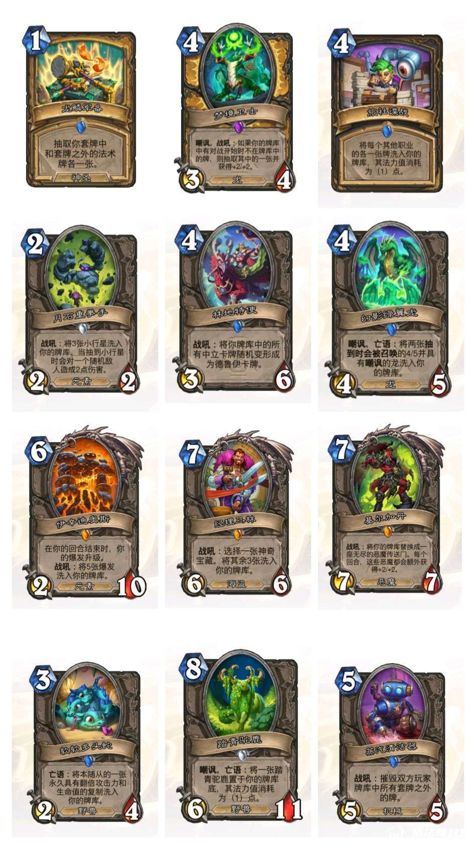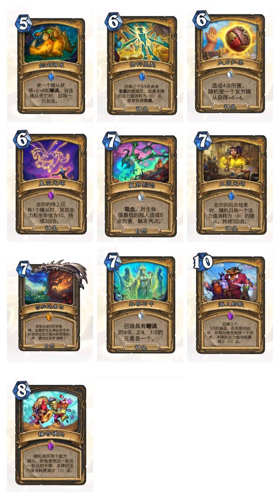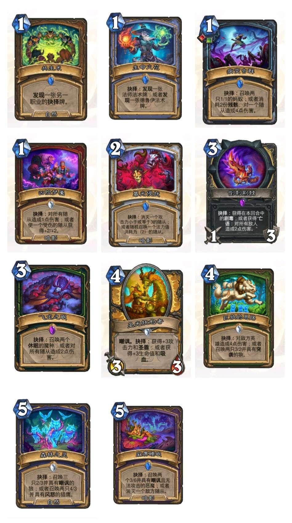 *因为荒野的祝福的缘故,可以随机出其他高费,故整理全职业随机池