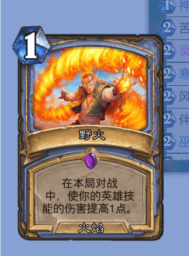 一、野火。拥有“在本局对战中”的高贵词条,如无意外,必定是灌注法满编卡。