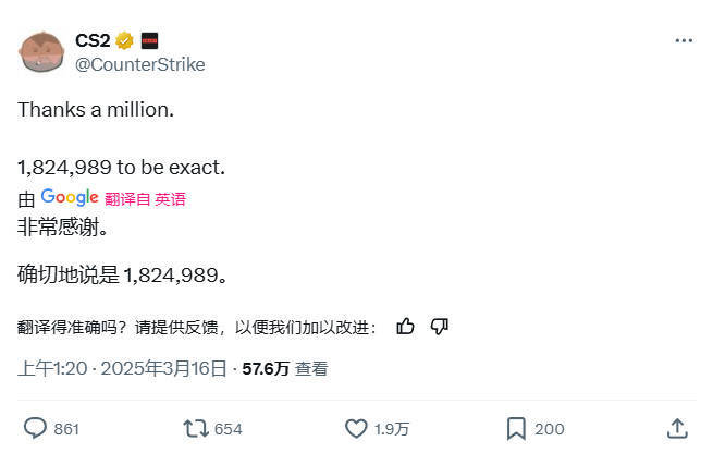 同时,《反恐精英2》也超过了《CS:GO》保持的记录(181万8773人),《CS:GO》在发售13年后创下历史新高。《CS:GO》之前的181.8万名同时在线玩家纪录自2023年5月起一直保持至今,但《CS2》终于成功超越了这一纪录。