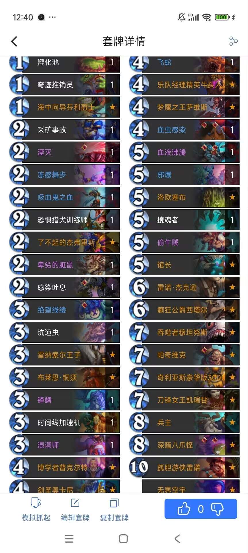 今天营地网页端还是不好用,只能手机端截个图先,构筑改变的地方不多,把原来的鲜血魔术师,新姐夫,诚信商家,鲍勃换成了新卡感染吐息,血虫感染,梦魇之王和增强后的馆长。