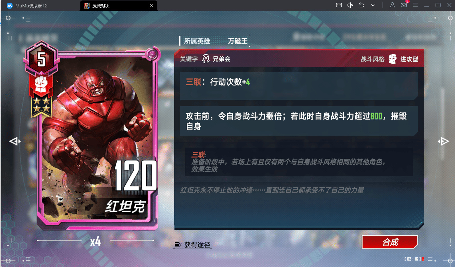 红坦克是叠加艾玛战力的重要组件 而且行动次数+4 可以完美的穿完大多数的黄队 如果没有四 两张也可以