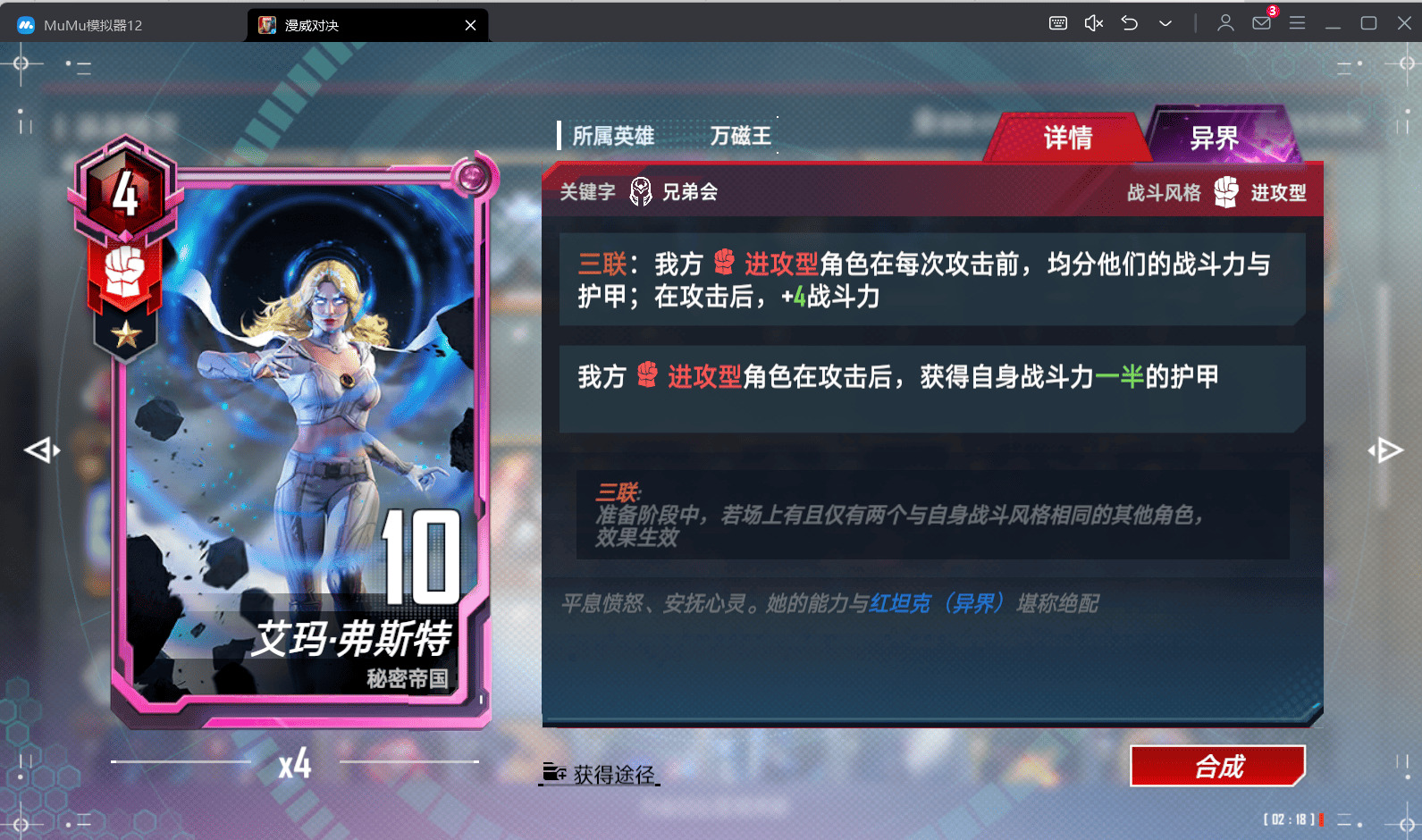 异界艾玛的强度觉得不容小觑 4星艾玛可以给红队角色叠加双倍护甲 很轻松就能滚起雪球 最优四张 两张也可