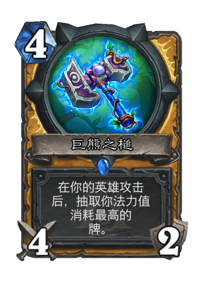 4费巨熊之槌,5费托雷斯并攻击抽牌(当然是抽高费的荒野之神)
