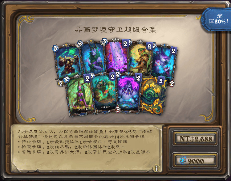 现在官方确认中立灌注牌苦花骑士和振翅守卫的异画也本该包含在梦境守卫超级合集里,而不是只在德鲁伊单职业的合集里。所以对于购买了超级合集的玩家,这些玩家的商店里会解锁一个“梦境守护者 - 额外增援合集”的免费的合集,补上这两张异画;对于购买了超级合集和德鲁伊合集的玩家,这些玩家还将在后续更新后收到德鲁伊合集的退款(国服2180奥术宝珠,外服3500符文石)。