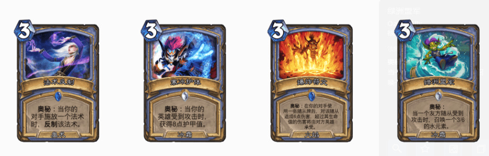 看到这里可能有人会疑惑,标准盗贼没有一张奥秘,奥秘贼是个什么东西?确实,这个版本的奥秘非常少,精炼掉了一些垃圾奥秘(艾泽里特矿脉、召唤结界),还加入了绿洲盟军,这使得标准的奥秘池子变得非常豪华。
