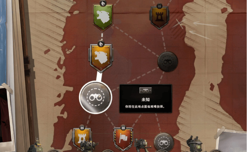 《铁锈风云》学习了很多肉鸽游戏在战斗系统里加入了类似爬塔的机制,但是这个爬塔机制几乎就只是一个形式,游戏的内容过于少导致爬塔路线的抉择失去了意义,玩家无非是在固定的几种战斗类型里做选择,随机事件就是在战斗和养成之间二选一,谈不上有多少变化,自然也就没有所谓的策略性。