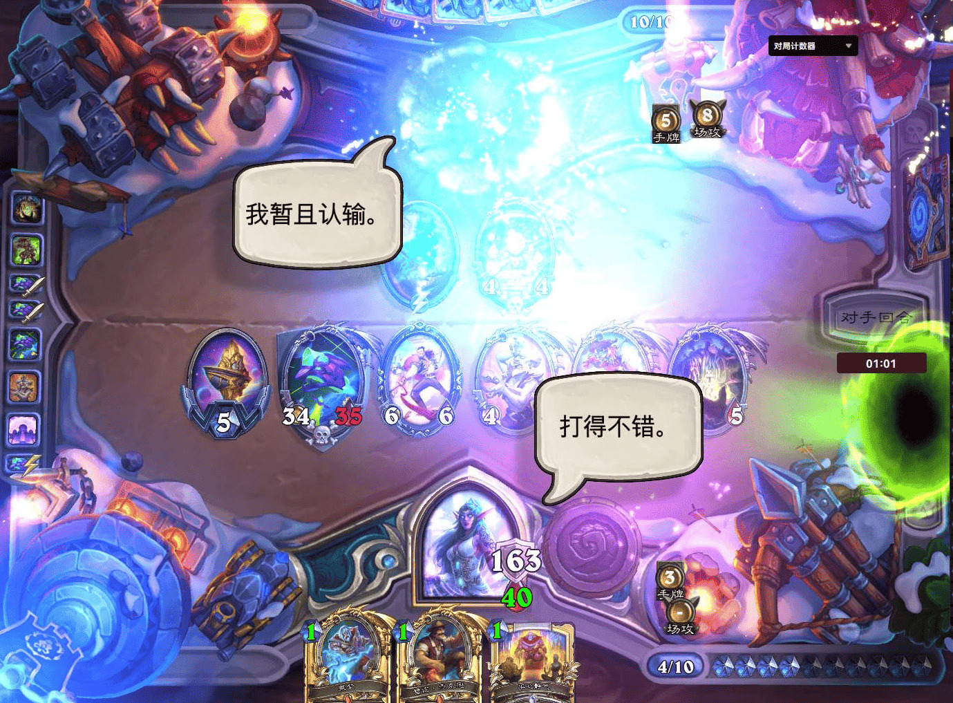 另外,跟萨满打的时候,我减成1费的随从下去,被萨满衰变,变的是0费的随从,而不是按随从本身的原有费用来计算的。
