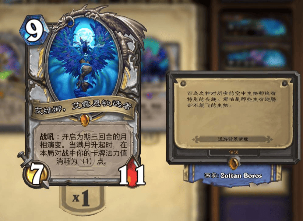 还发现一个BUG,如果先下黄金狗头人变卡减费,之后下牧师的新卡“艾维娜,艾露恩钦选者”,三回合后触新卡效果,之前黄金狗头人减费的卡变成0费了。按理说新卡会把所有卡变成1费,就像德鲁伊的“超凡之盟”一样吧?但是为什么后面又重新计算了狗头人的减费呢?