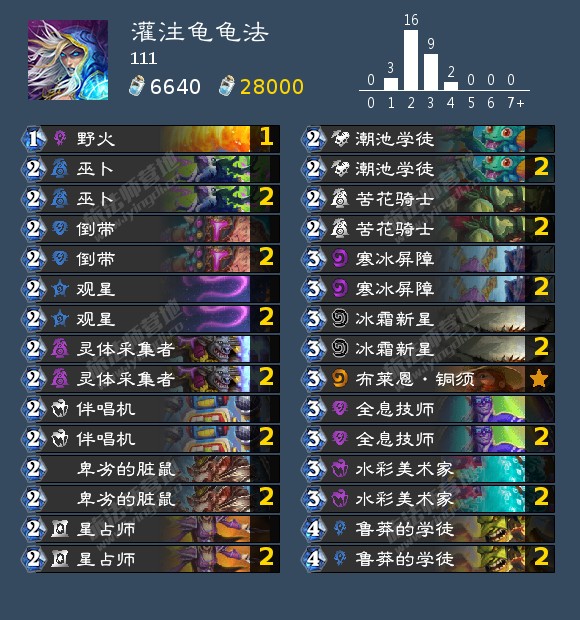 全息技师+点唱机+学徒,9费满场情况下7点伤害用于解场,1灌打脸伤害16-7=9,2灌32-7=25,3灌48-7=41,4灌64-7=57,5灌80-7=73。